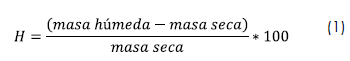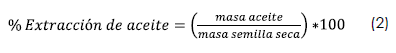 Al ser trituradas, las semillas son sometidas a un proceso de secado. La determinación se efectúa por diferencia de pesadas, utilizando una balanza analítica Sartorius BS 124S. Para el secado se emplea una estufa, modelo DHG-916A, por espacio de 2 h a una temperatura de 55 oC. De esta forma, la semilla se encuentra lista para el proceso de extracción. Para determinar la humedad se usa la ecuación 1.