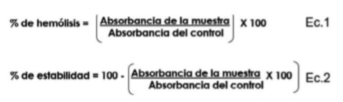 Todos los tubos fueron incubados a 37 °C por 30 min, posteriormente se centrifugaron a 3000 r.p.m. durante 20 min. Los ensayos se realizaron por triplicado y fueron leídos en un espectrofotómetro UV-VIS a 560 nm para calcular el contenido de hemoglobina, el cual fue usado como un indicativo del grado de hemólisis (a mayor hemoglobina mayor hemólisis).