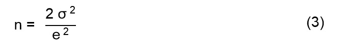 No obstante que el número de probetas por cada muestra fue de 32, cantidad suficiente para considerar la teoría de las grandes muestras en el análisis, se calculó a posteriori el tamaño de la muestra necesario para validar las pruebas estadísticas. El tamaño de la muestra (número de probetas) se calculó con la ecuación (3) (Gutiérrez Pulido & De la Vara Salazar, 2012):