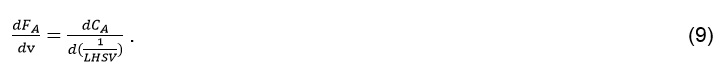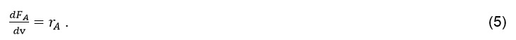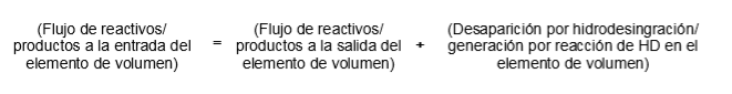 Aquí el elemento de volumen es la porción del reactor donde está contenida cierta cantidad de catalizador de hidrodesintegración, así como el fluido reaccionante. Matemáticamente, lo anterior se puede expresar como: