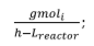 donde es la concentración del pseudocomponente i a la entrada del reactor.