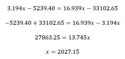 a la intersección. Para determinar el punto de intersección de ambas rectas se hace una igualación de funciones para encontrar el valor de x (tiempo en años).