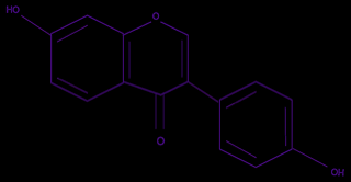 Las isoflavonas son los fitoestrógenos que pertenecen al grupo de los flavonoides, que tienen acción antioxidante; son muy investigadas por sus propiedades y los que más se estudian son la genisteína y la daidzeína, como se muestra en la figura 4 (Garrido G., de la Maza C., & Valladares B., 2003). En los granos de soya es donde hay más cantidad de fitoestrógenos; este tipo de grano es muy común en países del Oriente, ya que se ingiere con tofu y mijo entre 20 y 150 mg por día; mientras que en el occidente se ingieren sólo 5 mg por día de isoflavonas (Ludueña, Mastandrea, Chichizola, & Franconi, 2007).