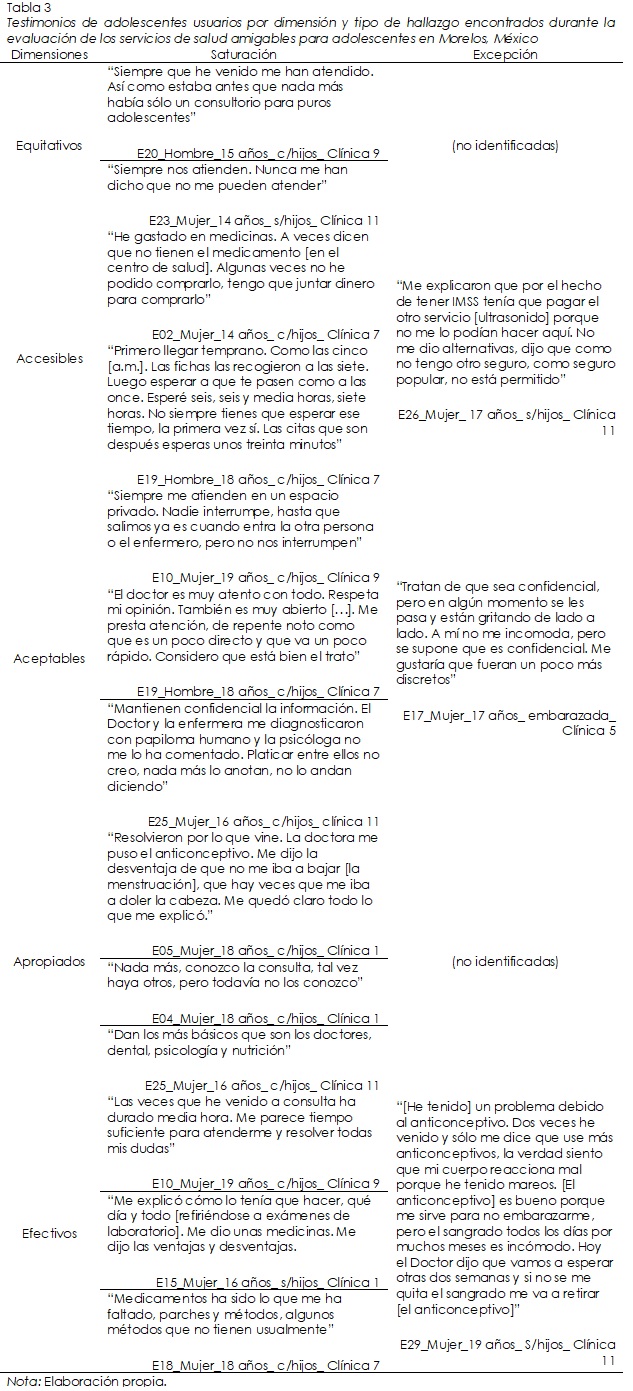 Calidad de la atención en los servicios de salud amigables para adolescentes en Morelos, México: Perspectiva de usuarios y prestadores