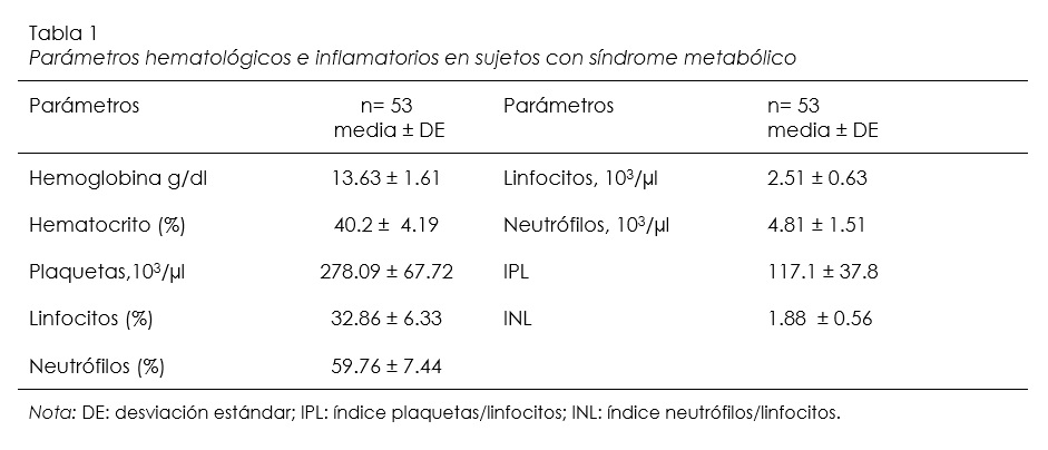 El síndrome metabólico (SM) es de origen multifactorial y se caracteriza por la presencia de al menos tres de las siguientes cinco anormalidades metabólicas: resistencia a la insulina, hipertrigliceridemia, bajas concentraciones de lipoproteínas de alta densidad (HDL), hipertensión arterial (HTA) y obesidad abdominal. Todas ellas son factores de riesgo para diabetes mellitus tipo 2 (DM2), enfermedad cardiovascular (ECV) y aterogénesis (Ahluwalia, et al., 2006; Alberti, Zimmet, Shaw, & IDF Epidemiology Task Force Consensus Group, 2005; Alberti et al. 2009; Naja et al., 2017). Diversos autores han demostrado que el SM y la DM2 cursan con inflamación crónica de bajo grado y elevación de marcadores inflamatorios como el índice neutrófilo/linfocitos o INL (Maravilla Domínguez et al., 2022). El INL y el índice plaquetas/linfocitos (IPL) son predictores mortalidad en pacientes con ECV, así como con DM2 en hemodiálisis (Balta & Ozturk, 2015; Demirtas et al., 2015; Hudzik, et al. 2015; Yaprak et al., 2016).