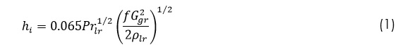 donde Prlr es el número de Prandtl para el refrigerante en fase líquida que circula en el interior de los tubos del intercambiador de calor, f es un factor de fricción estimado como