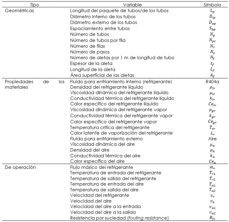 Las principales variables de entrada al ADIC; geométricas, de propiedades de los materiales y de operación, se muestra en la tabla 1.