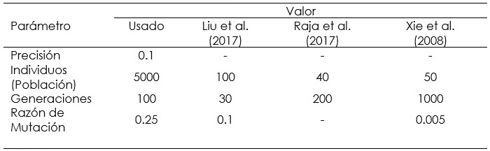 Los parámetros de funcionamiento relevantes del algoritmo genético se muestran en la tabla 2, los cuales son comparables a los implementados por otros autores en estudios sobre optimización de intercambiadores de calor (Liu, Bu, & Xu, 2017; Raja, Patel, & Jhala, 2017; Xie, Sunden, & Wang, 2008).