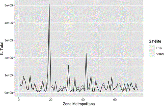 Para llevar a cabo el análisis a nivel de zonas metropolitanas en la República mexicana se utiliza el Índice Lumínico (IL), el cual funciona como proxy de medición de la actividad económica de dichas zonas. La utilización del IL se debe a la falta de datos oficiales de producción municipal. Este índice presenta dos características sumamente atractivas: i) la versatilidad en cuanto a la delimitación geográfica, pues permite el acceso a datos de las diversas zonas metropolitanas en todo el territorio nacional (Llamosas, Rangel y Sandoval, 2018); y ii) la precisión en la medición de la actividad económica real, ya que no excluye la actividad económica informal (Ghosh et al., 2009) y minimiza el efecto de las rentas extraordinarias petroleras en entidades como Campeche y Tabasco1.
