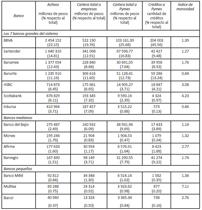 Un tercer factor que explica las mayores tasas pagadas por las pymes tiene que ver con la disponibilidad de opciones para obtener un crédito. En la medida que una empresa puede disponer de más opciones para obtener un préstamo, también puede lograr el pago de una menor tasa de interés. Por el contrario, cuando las opciones son limitadas suele aceptarse el pago de un mayor precio por acceder a los recursos financieros. De acuerdo con el Banco de México (2015), las empresas micro y pequeñas son las que enfrentan menores opciones de crédito en México, ya que la oferta de crédito de bajo monto está concentrada en los bancos con redes extendidas (bancos con una amplia red de sucursales y presencia en diversas entidades federativas), siendo este tipo de bancos los que llegan a otorgar hasta el 97% de los créditos menores a 100 mil pesos.