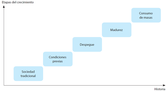 En la figura 1 se muestra el modelo de Rostow, donde queda claro lo anteriormente postulado.