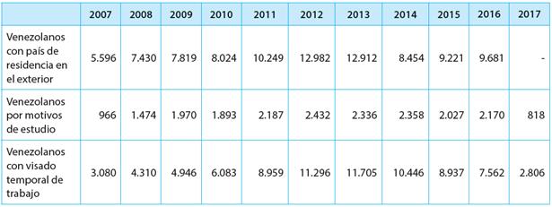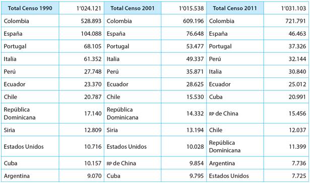 A partir del posterior auge petrolero experimentado en los años setenta, en el que hubo una alta recepción de migrantes colombianos anteriormente estudiada, Venezuela también se fue posicionando como un destino de recepción de exiliados y disidentes políticos provenientes del Cono Sur. No obstante, a pesar del registro de 1’024.121 extranjeros que residían en el territorio para 1990, al punto de llegar a la cifra histórica de 1’156.578 para 2011 (Comisión Económica para América Latina, 2016), por primera vez se está revirtiendo la tendencia migratoria histórica de Venezuela con la creciente salida de venezolanos durante los últimos diez años.