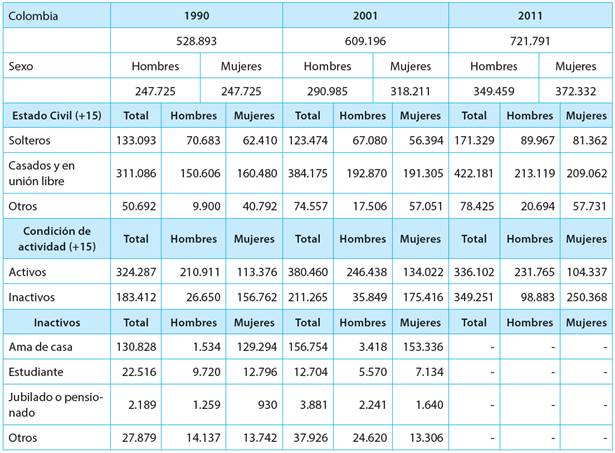 Sin embargo, es necesario hacer algunas salvedades antes de estudiar las dimensiones y realidades económicas de la diáspora colombiana durante los últimos quince años. Como se ha mencionado, las posibilidades de existencia de un escenario de subregistro poblacional de la diáspora colombiana están presentes, lo cual impide tener una visión proporcional del tamaño real de dicha población. Un ejemplo de ello se da en los procesos de regularización de los migrantes no documentados desarrollados a inicios de la década del 2000. De acuerdo con el trabajo de seguimiento realizado por el Grupo Académico Colombia-Venezuela (2015) sobre los flujos migratorios de colombianos hacia Venezuela, uno de los registros más recientes de aplicación de este tipo de políticas se remonta a los inicios de la presidencia de Hugo Chávez. Con el lanzamiento del Plan Nacional de Regularización y Naturalización de Extranjeros y Extranjeras en 2004, las autoridades venezolanas declararon que “calculaban en 1.500.000 los extranjeros indocumentados por lo que, al terminarlo, quedaban 800 mil sin resolver su situación, de los cuales estimaba que 680 mil eran colombianos” (Grupo Académico Colombia-Venezuela, 2015, p. 6). Sin embargo, es necesario considerar la dificultad de un panorama estadístico claro sobre este asunto, dando cabida a un posible caso de subregistro de poblaciones sin registrarse como migrantes regulares. Según el Alto Comisionado de las Naciones Unidas para los Refugiados (ACNUR) (2016a) (tabla 2), para 2014 se registró la presencia de 173.519 personas refugiadas o en condiciones sIMILAres al refugio3 provenientes de Colombia. Incluso, de acuerdo con la misma institución (2016b), se registra solamente la presencia de un total de 5.647 personas con estatus de refugiados. Por tanto, debido al gran tamaño de la población en situaciones sIMILAres a las condiciones de refugio, no hay una precisión sobre el registro de las personas mencionadas, lo cual puede causar una distorsión de los referentes estadísticos sobre la diáspora. Sin embargo, cabe mencionar que, a pesar de este inconveniente, es posible evidenciar que entre 2002 y 2014, el número de solicitudes ha disminuido notablemente, lo cual se puede atribuir, tanto a una reducción de los daños colaterales del conflicto armado en Colombia como a las consecuencias negativas de la crisis económica y política de Venezuela sobre temas migratorios. Esta posible hipótesis puede compartir las tendencias migratorias de la población regular, ya que a pesar de la particularidad de su condición migratoria, las condiciones coyunturales dibujan un panorama al que se enfrenta la población en general. Ahora bien, la diáspora colombiana en Venezuela en los últimos veinte años se ha caracterizado por tener una alta representación porcentual respecto al total de la población extranjera en este país, consolidándose como la más populosa. Para 1990, los colombianos representaban el 51,6 % del total de la población extranjera, proporción que aumentaría a lo largo de los años en que, según los registros censales posteriores, alcanzaría a representar el 59,9 % para 2001, y el 70 % para 2011 (tabla 3), lo cual demuestra que el crecimiento de esta población a lo largo de los últimos años no solo ha sido nominal, sino también en su representación porcentual.