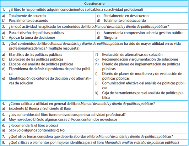 Como complemento de las anteriores preguntas y con el propósito de indagar sobre el impacto del texto, se diseñó un cuestionario aplicado a 52 estudiantes y egresados de la maestría en Gobierno y Políticas Públicas de la Universidad Externado de Colombia, lectores naturales del libro aquí analizado.