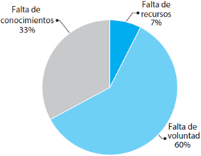 A continuación, se presentan los resultados de las encuestas aplicadas a los estudiantes del curso Métodos de Análisis y Diseño de Políticas Públicas de la Maestría en Gobierno y Políticas Públicas de la Universidad Externado de Colombia. La primera pregunta realizada a los estudiantes fue ¿por qué no hemos podido solucionar problemas milenarios? La mayoría atribuye dicha situación a la falta de voluntad política (60 %), mientras que otra porción considera que esto es así por falta de conocimientos para hacerlo (33 %). Una minoría considera que es la falta de recursos (7 %) la que dificulta la solución de problemas milenarios (figura 8).