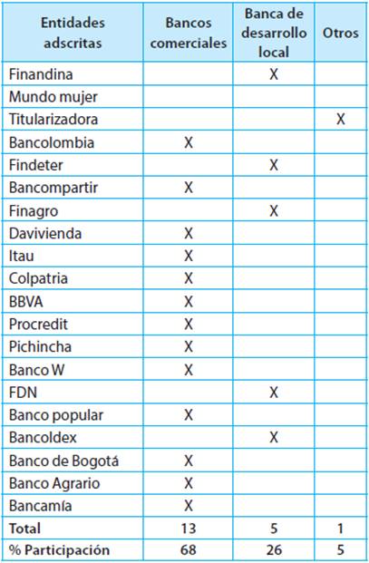 Los bancos con mayor representación son: Bancolombia, Itaú, BBVA, Procredit, Pichincha y Davivienda.