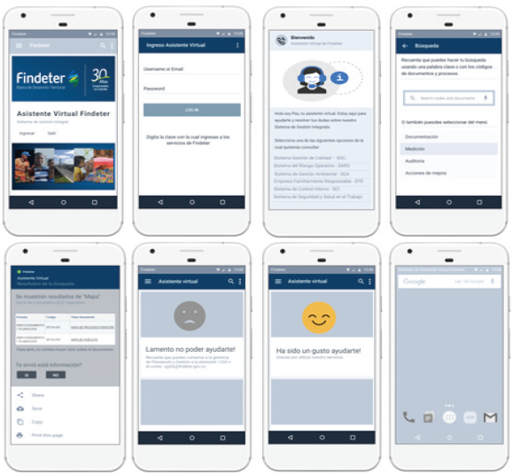 Al igual que con todos los asistentes virtuales, se confía en diseñar un programa informático para simular una conversación inteligente con uno o más usuarios humanos, a través de métodos auditivos o textuales, principalmente para participar en pequeñas conversaciones. Es común que a los agentes virtuales se les asigne como tarea orientar y dar respuesta a las inquietudes de los usuarios, en relación con un tema específico (Jiménez y Sánchez, 2015), por lo cual el prototipo de asistente virtual se diseñó inicialmente para un servicio determinado, asociado al MIPG de la organización, que apoyaría al usuario en la resolución dudas puntuales sobre el funcionamiento de la plataforma. Como todos los asistentes, trabajaría con inteligencia artificial, con base en la creación y el diseño de entidades capaces de razonar por sí mismas utilizando como paradigma la inteligencia humana (2015).