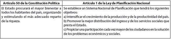 Al referirse al ligamen de ese artículo con el desarrollo nacional, debemos dirigirnos, inexorablemente, a la norma de menor rango que permite la intervención estatal en los campos social, económico, educativo, agroalimentario, de infraestructura nacional, por citar solo algunos,verbigracia,la Ley de Planificación Nacional 5525.