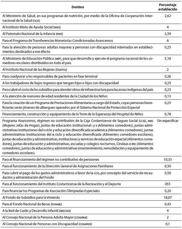 Fondo de Desarrollo y Asignaciones Familiares (FODESAF) dispuesto en la Ley 5662.
