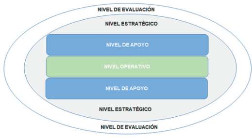 El nivel operativo se relaciona con la ejecución de objetivos, actividades y tareas puntuales que se realizan bajo los lineamientos de los roles estratégicos y de apoyo.