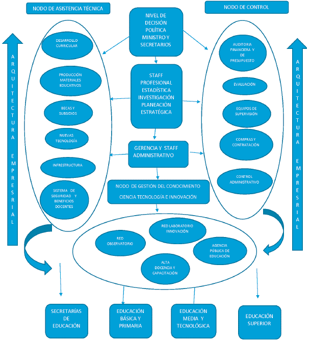 Dadas algunas de las características y las dimensiones más importantes de la educación que ha declarado el Instituto Internacional de Planeamiento de la Educación (upé) de la Unesco, se encuentran como determinantes las siguientes circunstancias en el sistema educativo. En primer lugar "la educación es la empresa más grande de un país"; en otras palabras, quiere decir que es la administración pública más grande en el Estado. En segundo lugar, la educación pública es irreductible, es decir, la educación siempre estará en expansión, debido a que hay gran cantidad de demanda insatisfecha, no solo en Colombia sino en el mundo. Esto conduce a interpretar que en el futuro los sistemas educativos tenderán al aumento y no a la disminución. En tercer lugar, los sistemas educativos son personal intensivo, con una gran diversidad de perfiles de trabajo. Ante estas condiciones y factores que presenta la educación en general, el Ministerio de Educación Nacional, tal como está planificado y coordinado, no permite cumplir con los propósitos de una educación para todos y con calidad, dado que su actual estructura organizacional obedece a una pequeña empresa en donde las dependencias están pensadas desde las funciones y no desde los servicios.