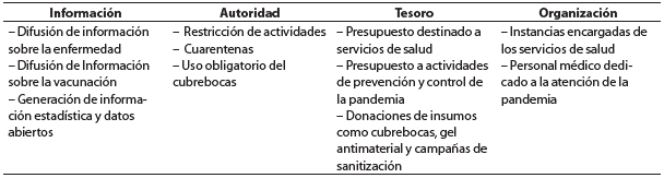 También se considera la clasificación de Hood y Margetts (2008) respecto a las herramientas disponibles de políticas públicas en el contexto de la pandemia (tabla 2).