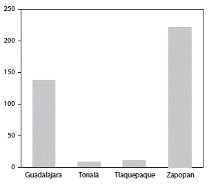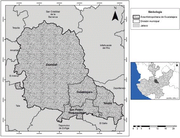 En este trabajo únicamente se hará referencia al AMG conformada por los municipios de Guadalajara, Tonalá, Tlaquepaque y Zapopan, en virtud de que el organismo operador de agua proporciona el servicio