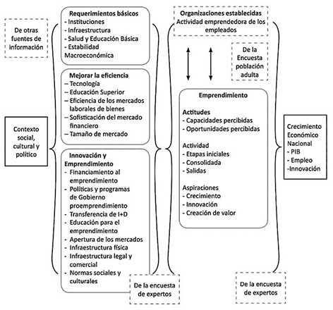 Es más, de seguir la orientación que, por ejemplo, el Monitor Global de Emprendimiento (Chaves y Fonseca, 2015; Petry y Lebendiker, 2011) establece como modelo para la mejor comprensión de los emprendimientos, tal y como el visible en la figura 5, el cual rescata elementos como actitudes, actividades emprendedoras y aspiraciones personales, entonces el acercamiento de las ADC a una gestión maciza en términos empresariales y de autosuficiencia tiene aún gran camino por recorrer. Ahora bien, este tipo de acciones, al ser un tema de estrategia país, deben reflejarse y provenir de la más alta esfera de la planificación nacional, como lo es el Plan Nacional de Desarrollo, así como ser apoyado por diferentes entes ministeriales y descentralizados, siendo Dinadeco la piedra angular para ello.