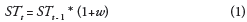 Donde: STt corresponde al sueldo teórico en el periodo t, mientras que STt es el sueldo teórico del periodo anterior, y w la tasa de crecimiento anual estimada para las remuneraciones en la formulación original del sistema de pensiones, la cual, para términos prácticos es mensualizada en su aplicación, a fin de establecer periodicidades compatibles con las siguientes variables.