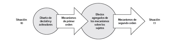Las ciencias sociales han buscado en los mecanismos una forma de explicar los problemas sociales, más allá de los resultados estadísticos, postulando como idea básica que los mecanismos detallan el engranaje del proceso causal que produjo un resultado (Hedström y Ylikoski, 2010b). Por ello, el mecanismo se identifica con un enfoque asociado al tipo de fenómeno que se produce (Darden, 2006), lo que significa que un mismo mecanismo puede producir diferentes resultados, dependiendo del contexto, lo cual impide la generalización. Por otro lado, el mecanismo significa causalidad. Mahoney define al mecanismo como una entidad inobservable que puede llegar a producir resultados (Mahoney, 2004); sin embargo, la mayor crítica a este postulado se deriva de que un mecanismo, per se, no es invisible o imperceptible, por lo que permite ser evidenciado y estudiado de diferentes formas. Significa abrir la caja negra del fenómeno social, retomando la visión sistémica propuesta por Easton (1953).