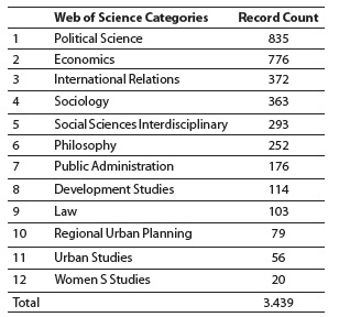 En cuanto a las disciplinas que comprenden áreas relacionadas con las ciencias sociales existen 3.439 artículos y capítulos de libros que utilizan mecanismos causales como metodología en el estudio de pocos casos desde 1975 hasta 2022. La ciencia política integra el mayor número de producción académica, seguida de la economía y, muy por debajo, disciplinas como derecho, estudios urbanos y estudios de género (tabla 2). No obstante, este artículo solamente presenta una cohorte sobre 12 subáreas con algunas orientaciones hacia el estudio de las políticas públicas.