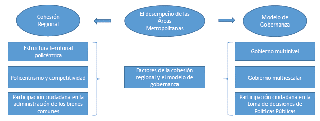 La tesis del presente artículo es que la estructura territorial no es una condición automática para la prosperidad, sino que requiere de condiciones complementarias, a saber: la forma en que se estructura dicho espacio y el modelo de gobernanza. Para que un espacio territorial metropolitano logre los resultados esperados debe construir un marco institucional que propicie la cohesión regional que, a su vez, depende de la conformación de una estructura territorial policéntrica y un modelo de gobernanza apropiado.