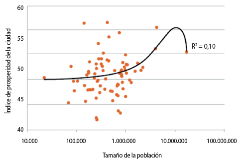 En el caso de Ciudad de México, el Índice de Prosperidad Urbana (IPU) no mostró una correlación positiva entre economía de aglomeración y productividad, por un lado, y, calidad de vida, por el otro lado. Muchas ciudades intermedias entre 500.000 y 1.000.000 de habitantes tenían un mejor desempeño. Las razones parecen estar en los costos asociados a la falta de una estructura policéntrica funcional y la ausencia de un modelo de gobernanza metropolitano (figura 7).
