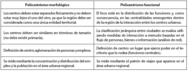 El policentrismo es una estructura espacial y suele definirse como el modo en que las actividades son organizadas en el territorio. La región policéntrica está idealmente conformada por la presencia de ciudades diferentes y separadas físicamente, siempre y cuando un conjunto de condiciones sea satisfecho plenamente en términos de separación del centro, distribución, especialización e interacción entre los diversos nodos.