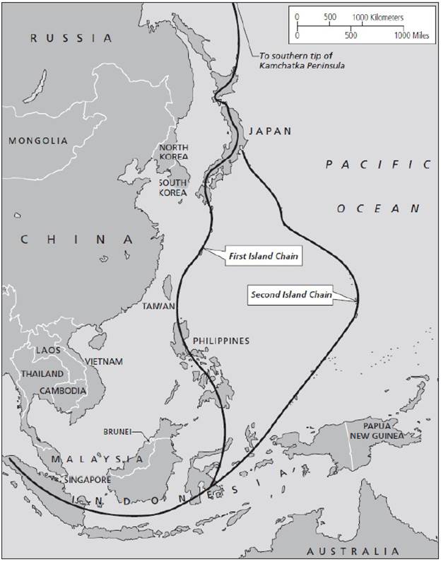 unido, a su vez, al desarrollo de las capacidades navales chinas para denegarle a Estados Unidos el acceso a la región, y, más concretamente, al espacio comprendido dentro de la primera cadena de islas para, posteriormente, proyectar su poder sobre la segunda cadena de islas.