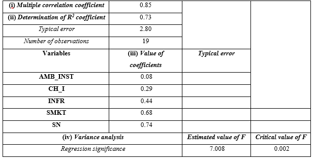 (v) Y= 0.74 SN + 0.68 SMKT + 0.44 INFR +0.29 CH_I + 0.08 AMB_INST + µi