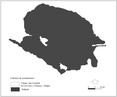 Tal apropiación del territorio de larga duración contrasta con la organización urbana del espacio de la Ciudad de San Cristóbal de Las Casas, núcleo poblacional concentrado que inicia con un pequeño asentamiento español en 1528. Los territorios, como espacio-temporalmente producidos, se manifiestan en el vasto Bloque Central (240 mil hectáreas aprox.) a través de parajes o comunidades indígenas diseminadas en su área montañosa, cuya población frecuentemente va de 150 a 800 habitantes, y de un asentamiento urbano ubicado en el poljé (Cervantes 2006), estructura de fondo horizontal formada por un hundimiento en bloque del terreno a partir de fallas regionales (Jiménez Salas 1984), que contaba con 215,874 habitantes en el año 2010 (INEGI, 2011). Estas territorialidades opuestas se ilustran en la figura 1.