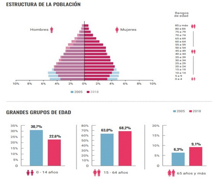 Apesar da predominância da população urbana, a população rural tende a protagonizar o cenário político, econômico e cultural, em especial porque, historicamente, os conflitos armados envolvem os temas e espaços rurais colombianos (Castro 2019). A relevância da população jovem também se traduz em números de violência e pobreza.
