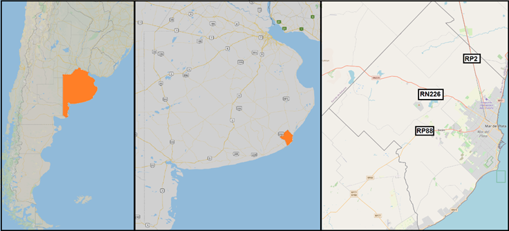El PGP se encuentra en el sudeste de la provincia de Buenos Aires en Argentina (mapa 1). Su ciudad núcleo es Mar del Plata y es en los bordes de ella donde se emplaza el cinturón verde del Partido, en el cual se pone foco en este artículo. Este abarca las zonas lindantes a las rutas 2, 226 y 8 (mapa 1).