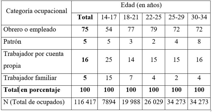 En tanto a la categoría ocupacional (cuadro 2), observando los datos del PGP prevalece el trabajo en relación de dependencia hasta los 17 años, superando más de la mitad de los casos, seguido por el cuentapropismo (25%) mientras que el trabajo familiar se presenta en un 15%. El quiebre en los 18 años potencia a la categoría asalariada (llega al 77%, tendencia que se mantiene a medida que aumenta la edad). En cierta manera, la ausencia de las restricciones propias de la protección del trabajo adolescente habilita la inserción de los jóvenes en trabajos para terceros, saliendo del círculo familiar.