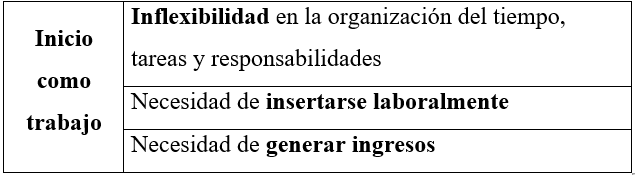 El inicio como ayuda toma diferentes significaciones para los jóvenes: la flexibilidad, el aprendizaje y los otros sentidos que se le otorgan al espacio productivo (cuadro 5).