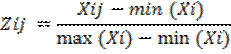 El Indicador Sintético constituye una media estadística de un conjunto de variables seleccionadas teóricamente. Las variables son normalizadas con el método mínimo-máximo. De acuerdo con el mismo cada una de las variables tendrán un rango idéntico [0, 1], según la siguiente ecuación (OCDE, 2008):