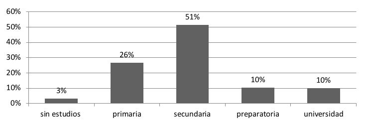 Con respecto a la educación, en el CEREPRESO Topo Chico, Monterrey (Figura 19) el 68% de los encuestados cuenta con educación secundaria o menor, mientras que el 27% de los encuestados cuenta con educación preparatoria y 5% con educación universitaria. Por su parte, el caso del centro penitenciario de Santiago de Veraguas, Panamá (Figura 20), el 80% de los encuestados manifestó contar con educación secundaria o menor. Mientras que solo el 10% manifestó contar con educación preparatoria, y otro 10% con educación universitaria.