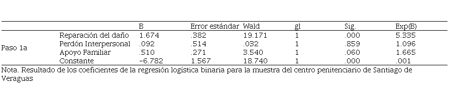 No obstante, a pesar de que el perdón interpersonal y el apoyo familiar resultan no tan significativas, se observan diferencias en ambos escenarios de estudio, ya que en el CEPRERESO Topo Chico la variable con menor significancia es el apoyo familiar y en el centro penitenciario de Santiago de Veraguas es la variable del perdón interpersonal la que menos aporta a la probabilidad de favorecimiento de la resiliencia familiar.