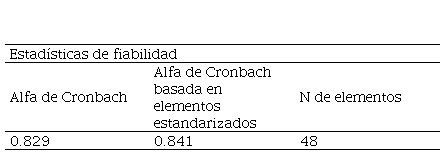 Se entiende por fiabilidad el grado en el que un instrumento es capaz de medir consistentemente una muestra de la población (Oviedo & Campo-Arias, 2005). El alfa de Cronbach se aplicó al conjunto de datos recuperados en ambos escenarios, Monterrey y Santiago de Veraguas Panamá, con el objetivo de conocer si las adaptaciones al lenguaje tuvieron algún impacto significativo en la validez del instrumento.