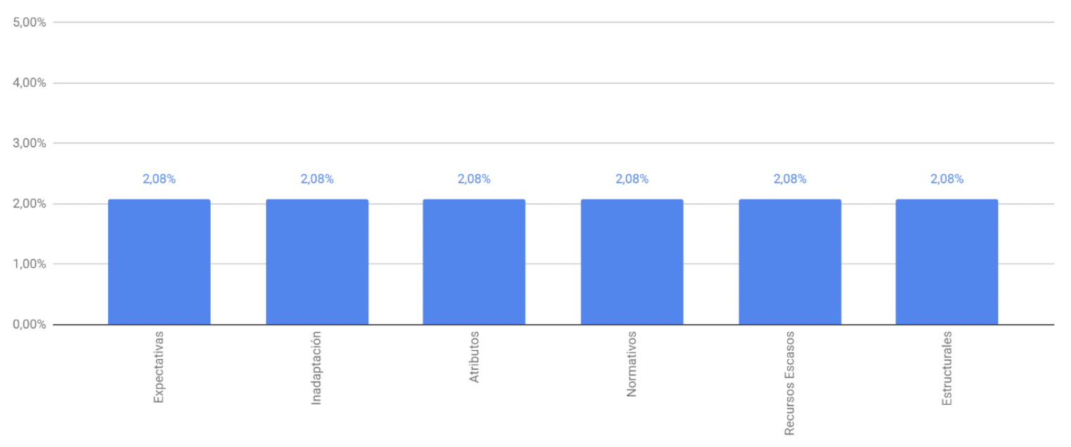 Algunos de los patrones aquí puntuados se han descrito con antelación, estos son Atributos en la Grafica dos, Inadaptación y Normativos en la Grafica tres, y Recursos Escasos en la Grafica cuatro. Por su parte los patrones Expectativa y Estructurales se desarrollan a continuación.