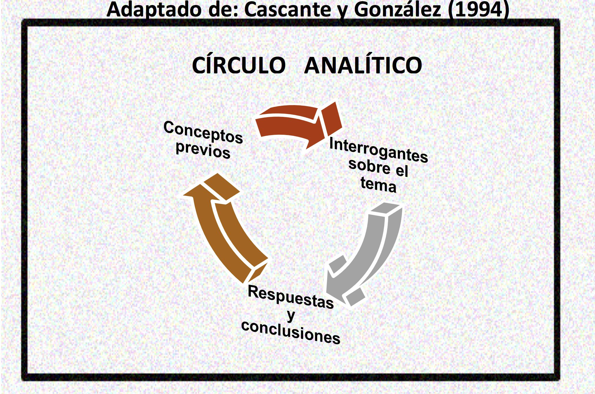 El ejercicio se estructuró desde el círculo analítico (Valenciano, 2015) que, como estrategia didáctica, permite organizar significativamente el aprendizaje a partir de los momentos de: tema por estudiar, preguntas sobre el tema, registro de nueva información y conclusiones o ideas generales (ver figura 1).