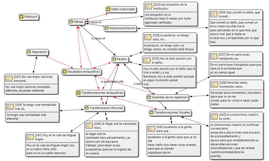En el diagrama 1, se puede apreciar como el hecho de que las víctimas puedan permitirse perdonar la ofensa recibida, es parte central del proceso restaurativo, del cual se desprenden transformaciones sociales y personales que en el caso de “Tatiana” se han podido evidenciar.