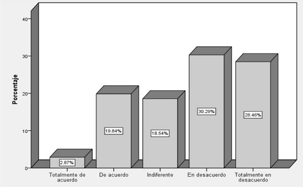 En cuanto a la percepción de la ciudadanía sobre si se han tomado las medidas necesarias en el municipio para mejorar la seguridad, los porcentajes de totalmente en desacuerdo y en desacuerdo suman un 58.8% y en comparación las variables de acuerdo y totalmente de acuerdo sólo tienen un 22.7% (gráfica 3).