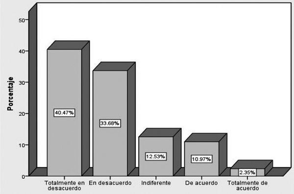 En lo que se refiere al mejoramiento de la seguridad pública en la última administración, se encontró lo siguiente: si se suman las personas de las categorías totalmente en desacuerdo y en desacuerdo, el porcentaje es de 58%. En oposición, sólo el 29.66% de los encuestados consideró que mejoró la seguridad. Por lo tanto, la percepción ciudadana es mayormente negativa en torno a la seguridad (gráfica 2).